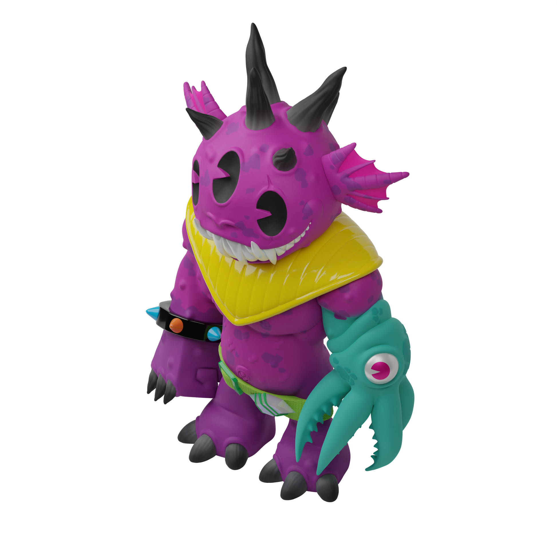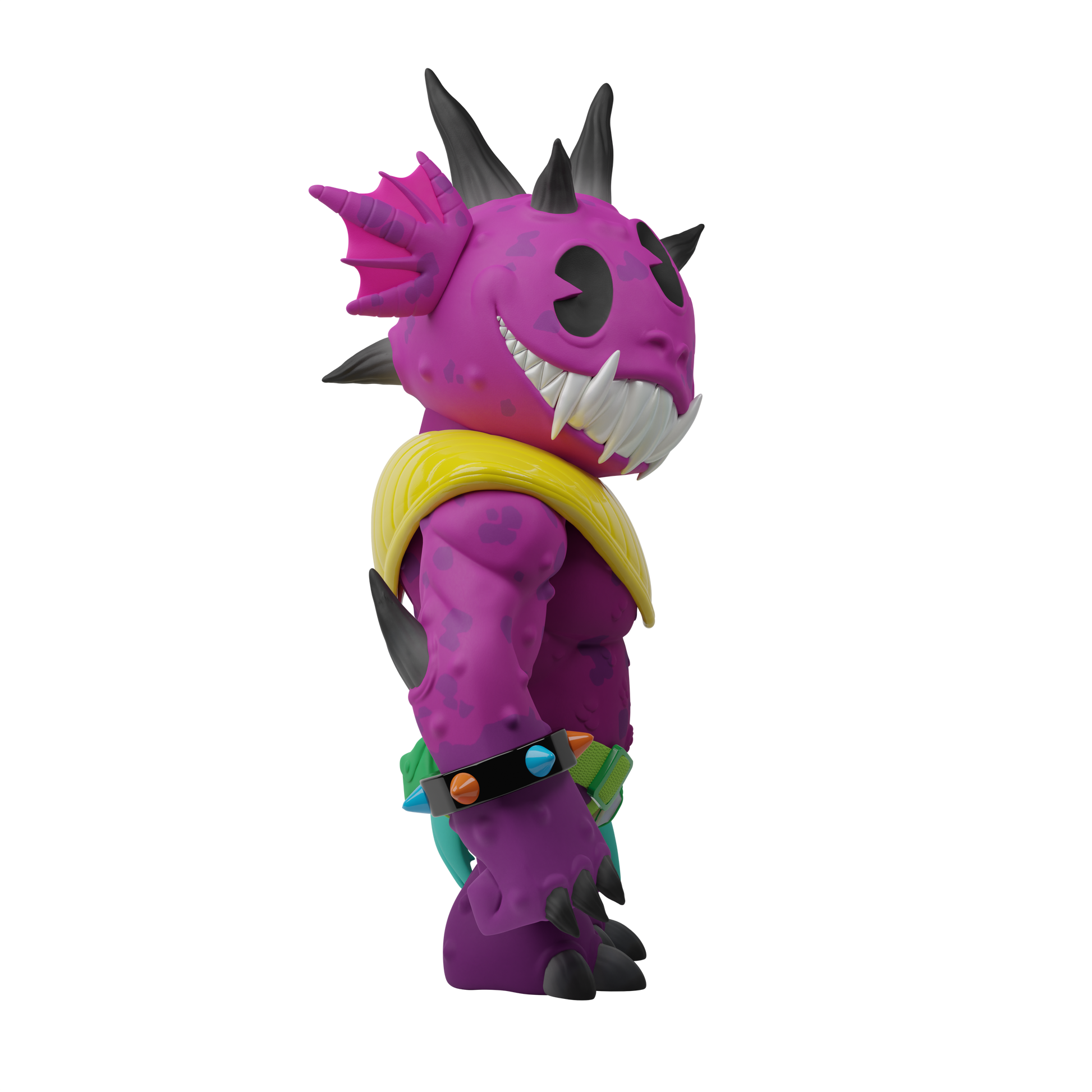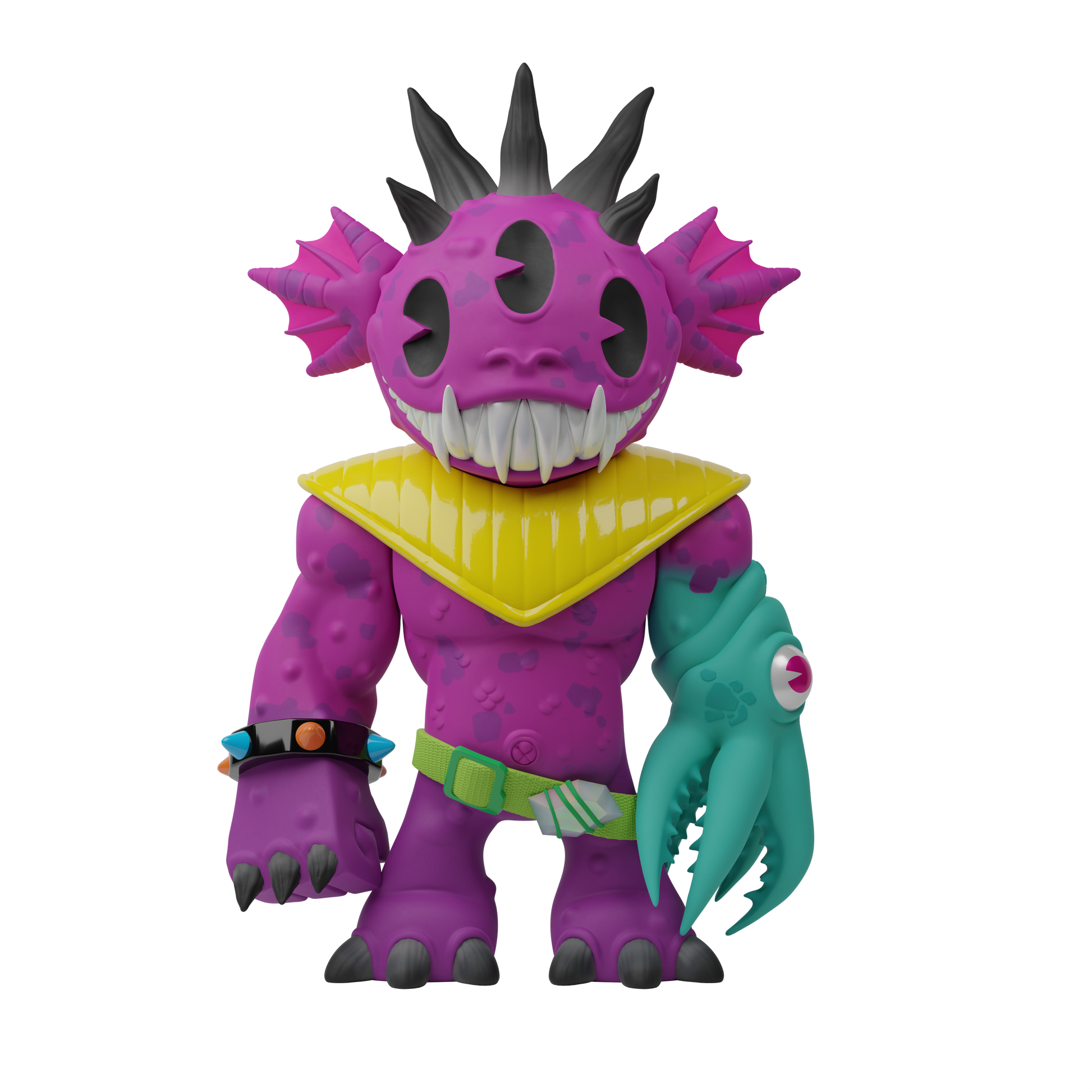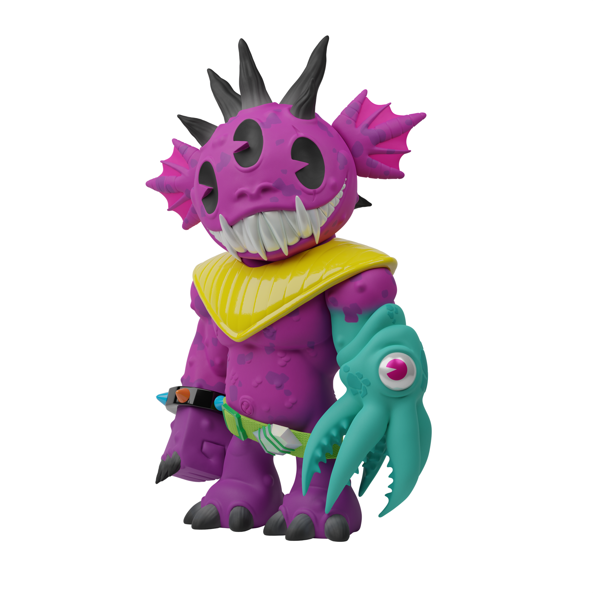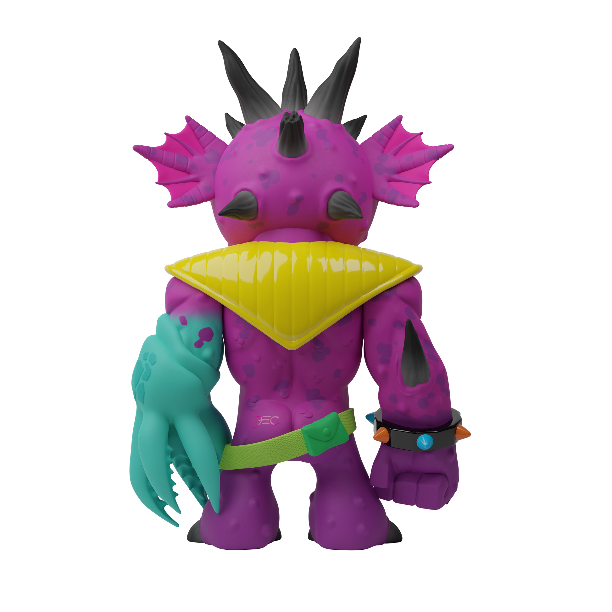 Introducing Pinche Chilango from the series "The Great Hunt for Intergalactic Kaiju Invaders" – a 30-centimeter tall vinyl art statue designed by graphic artist and multidisciplinary designer Julio E Carrillo, also known as JEC. This unique piece merges Japanese fantasy elements with Western art toy aesthetics, retrofuturistic flair, and Mexican pop culture folklore, sparking the imagination and showcasing JEC's artistic expertise in design and storytelling.